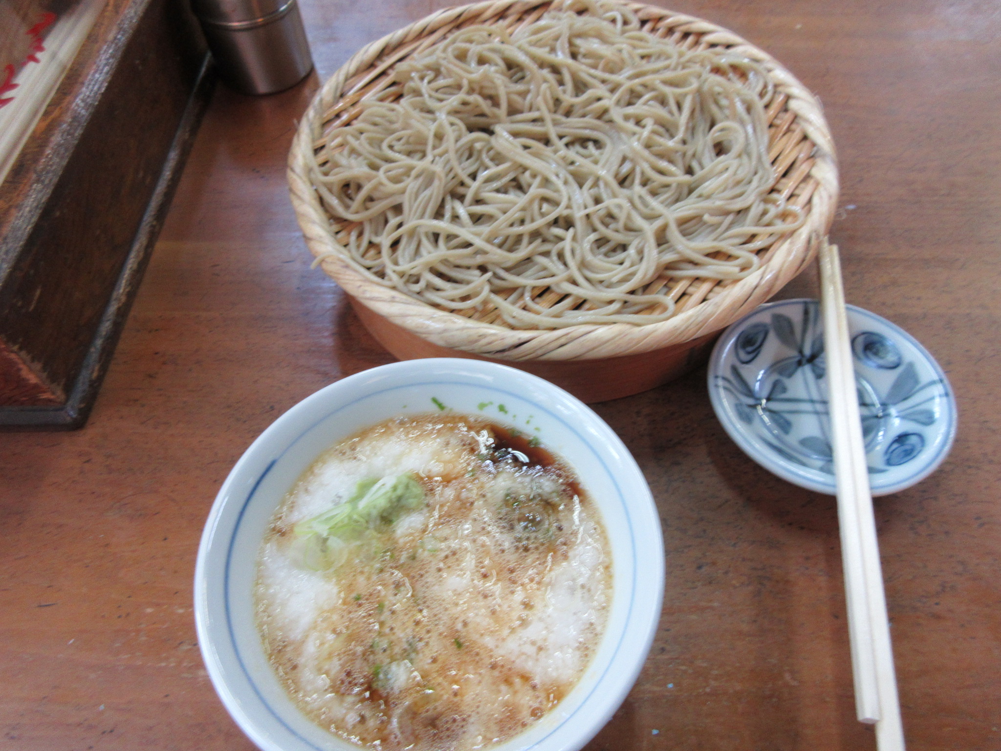 そこまでテクテク歩いてお金をおろし、深大寺境内に戻って動物慰霊塔の近くにあるお店に入り「とろろそば」を注文。