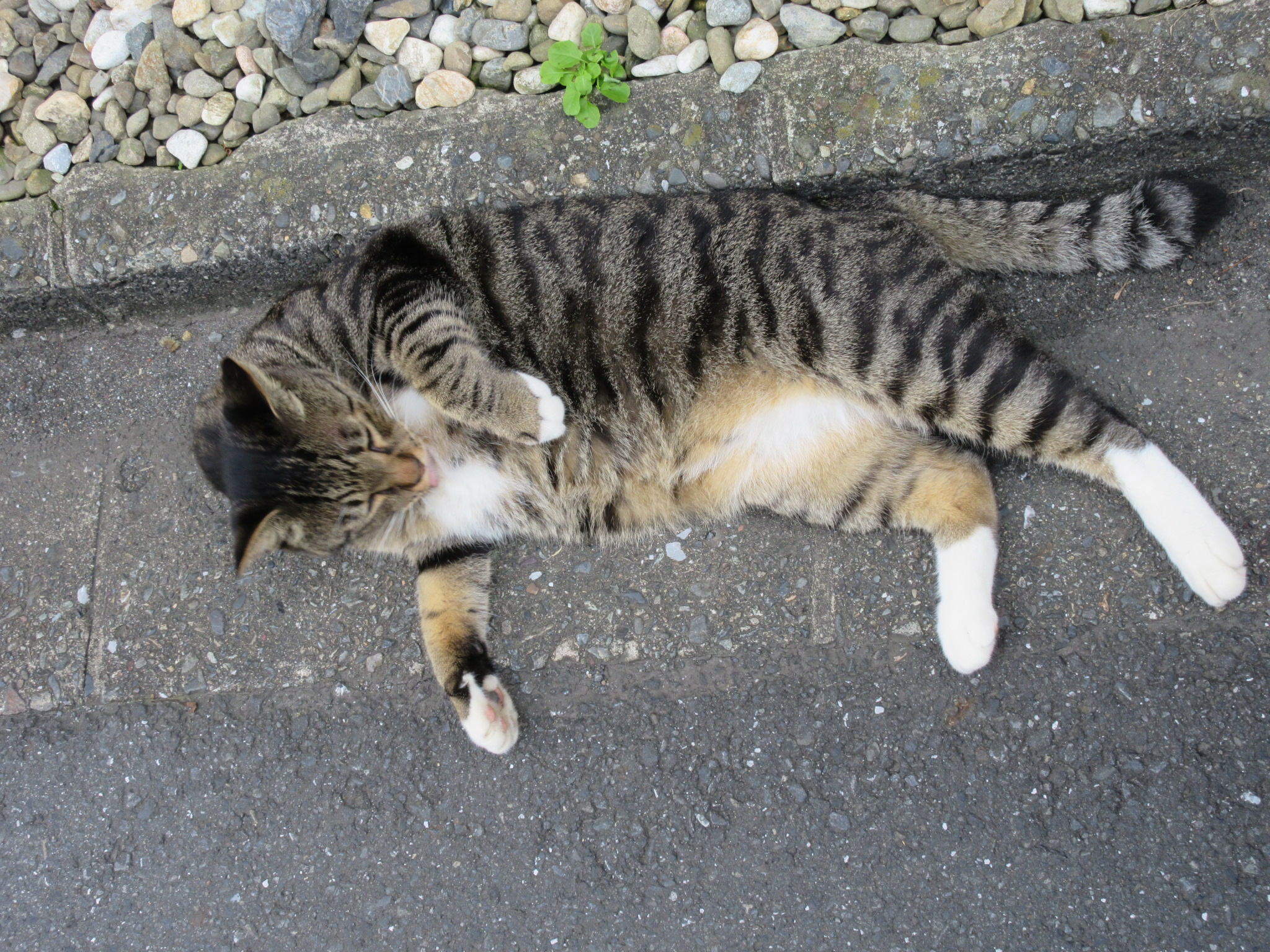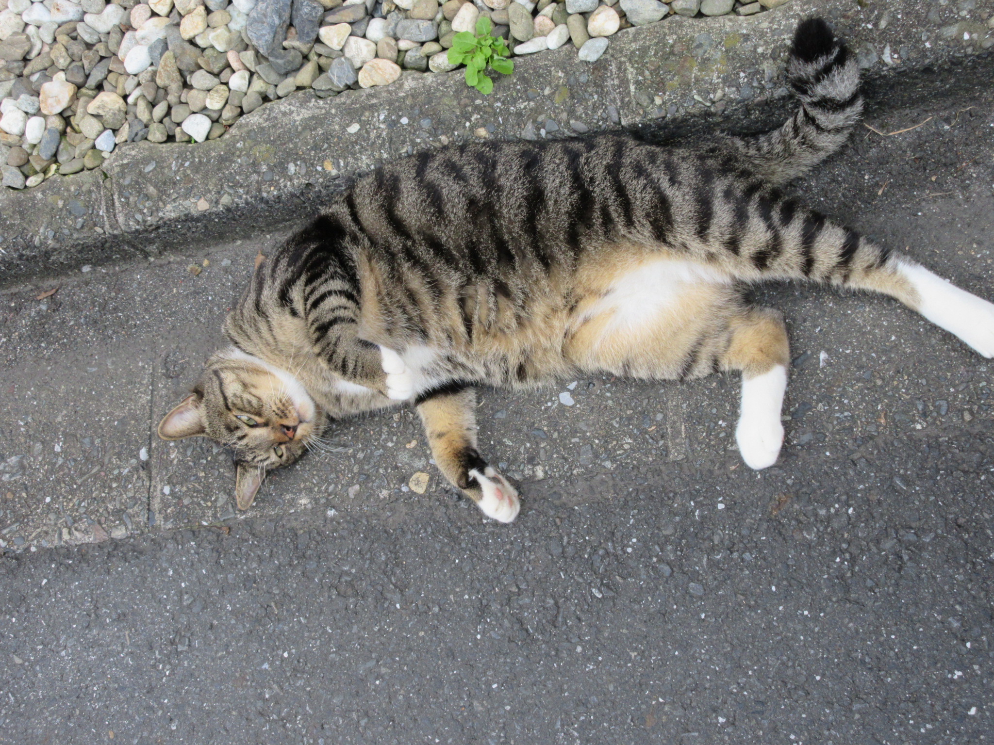 きっと、散歩や縄張りのパトロールでもう何度も渡っているんだろうけど、誰に教えられたわけでもないのにちゃんと車の流れを確認して、しかも反対側の車線の流れまで見てから横断するなんて、まだ小さいのに何て賢い猫なんだ!